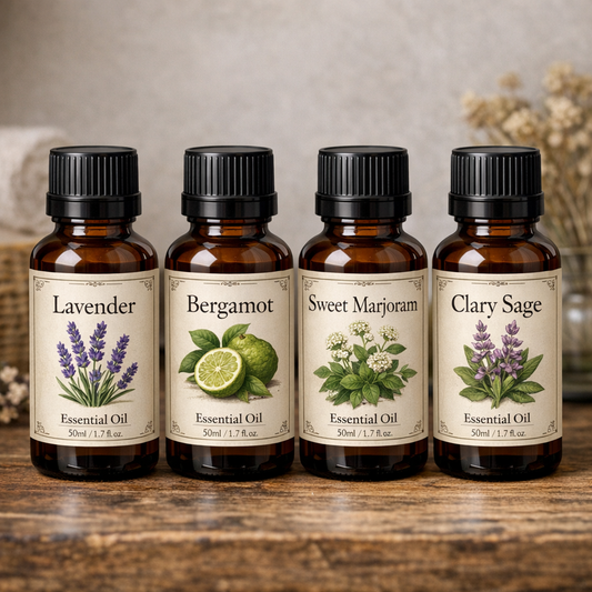 Essential oils - Lavender • Bergamot • Sweet Marjoram • Roman Chamomile • Clary Sage...